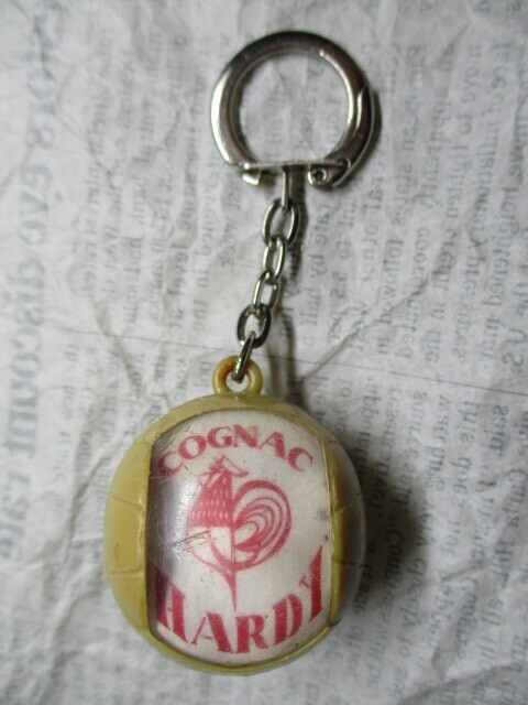 サッカーボール形のコニャックハーディのキーホルダーです。